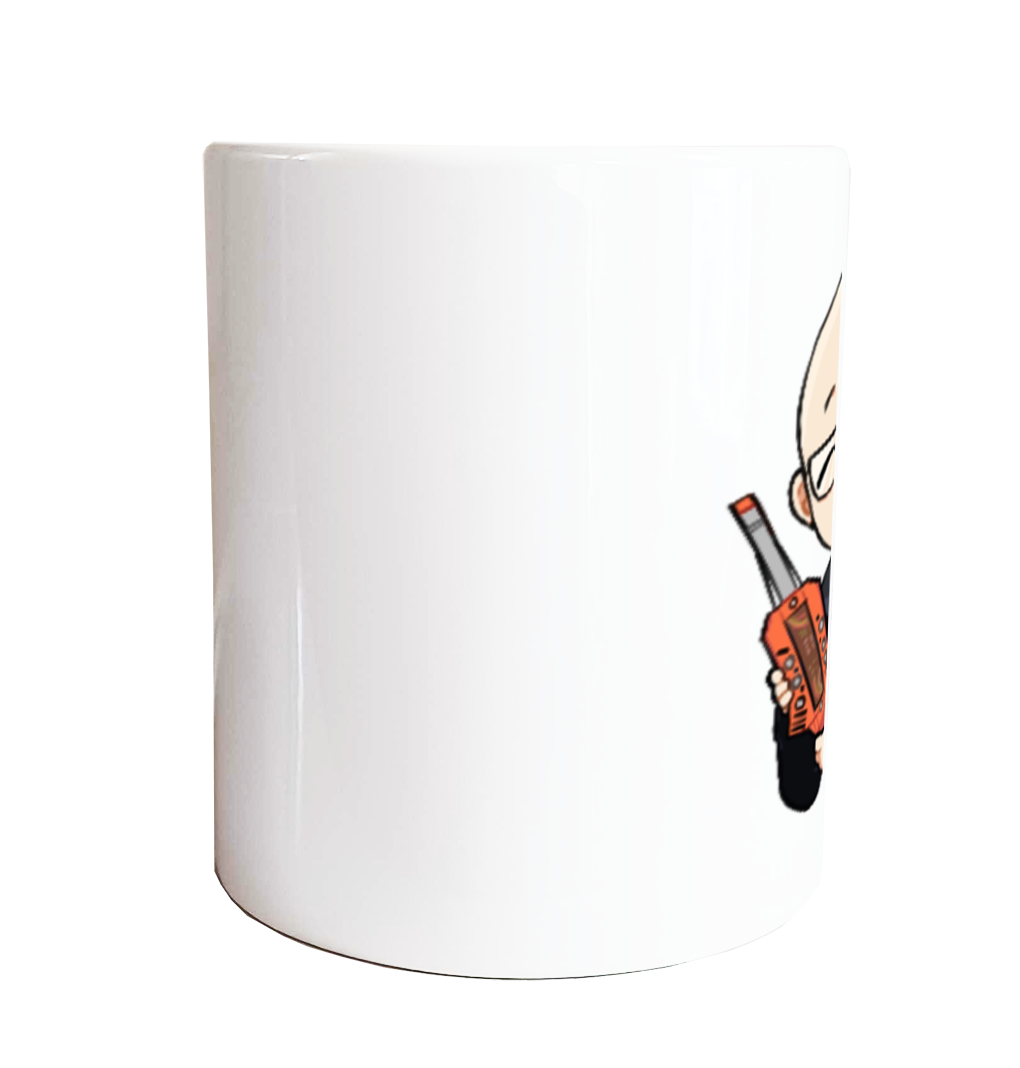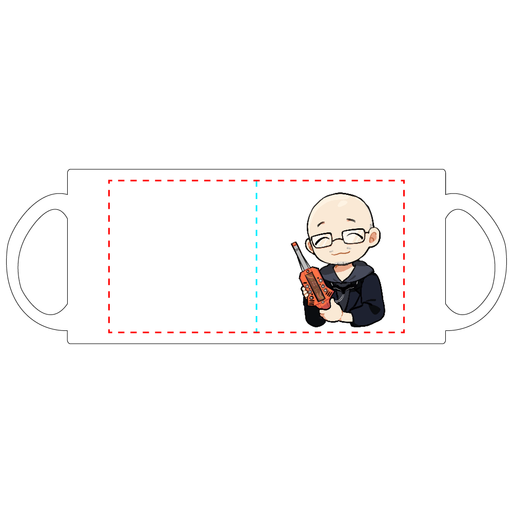 NuRADを手にしたかわいいイラストが描かれたマグカップです。